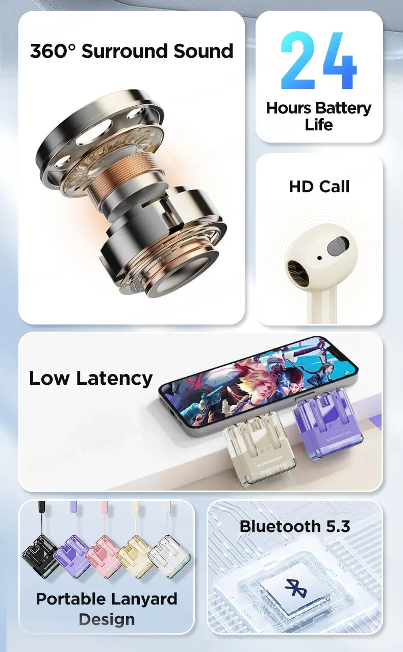 Monster XKT12 Gaming Earphones Wireless Bluetooth 5.3 Headphones TWS HIFI Sound Sports Earbuds